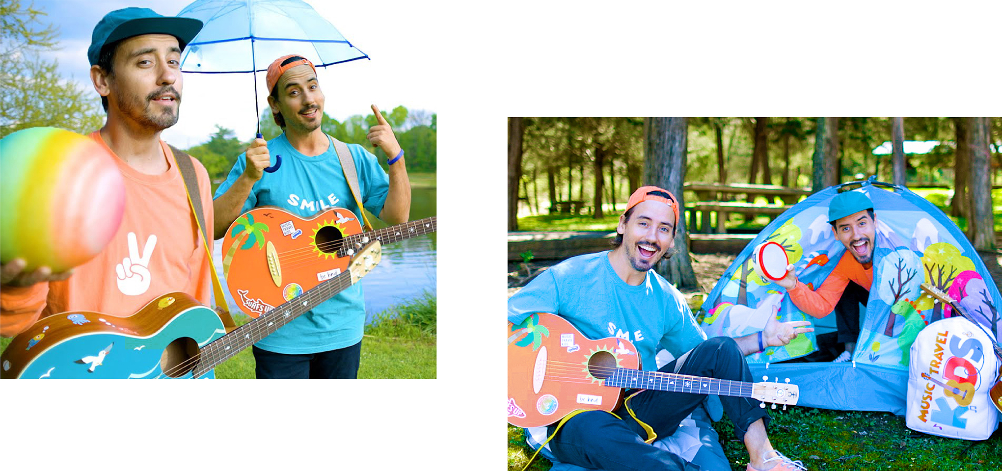 Music Travel Love started their new channel "Music Travel Kids"on Youtube in 2021 creating educational and entertaining content for the youth. Bob and Clint's bright and lively expressions allow the music to blend with various creative situations, Spreading joy and love through colorful musical notes, a perfect gift for children of all ages! Follow these two big kids, pick up your instruments, and explore our world with music!