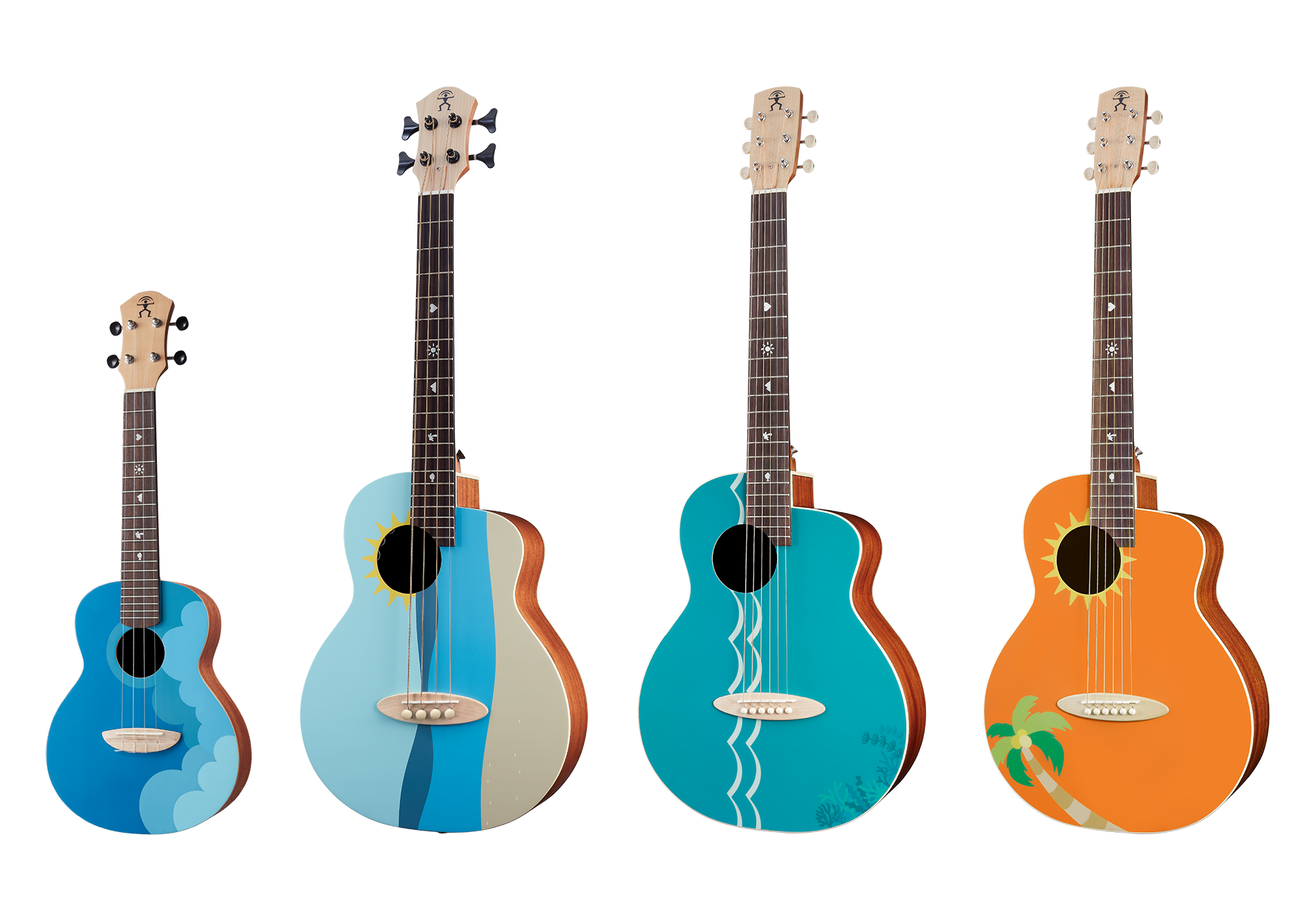 On the second installment of aNueNue and Music Travel Love's collaboration, together to form Music Travel Kids! Innocence and creativity to create a super fun musical instrument! The inspiration came from the colorful sceneries on the road. With four landscapes: Ukuleles, as well as guitar and acoustic bass, satisfying the musical imagination! with the included design sticker set, allow your innocence and creativity flow freely and add your own style to the instrument!