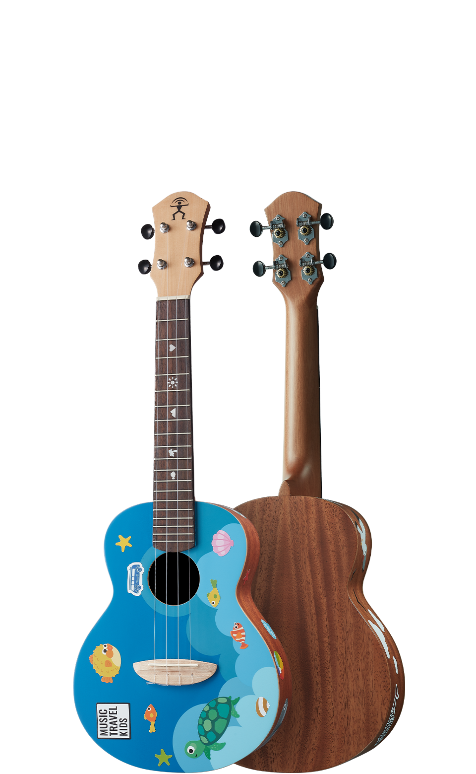 The fingerboard point turns the core spirit of Music Travel Love into loving elements, which is inlaid with shell materials in shapes such as "love, sun, mountain, coconut tree, and fish".