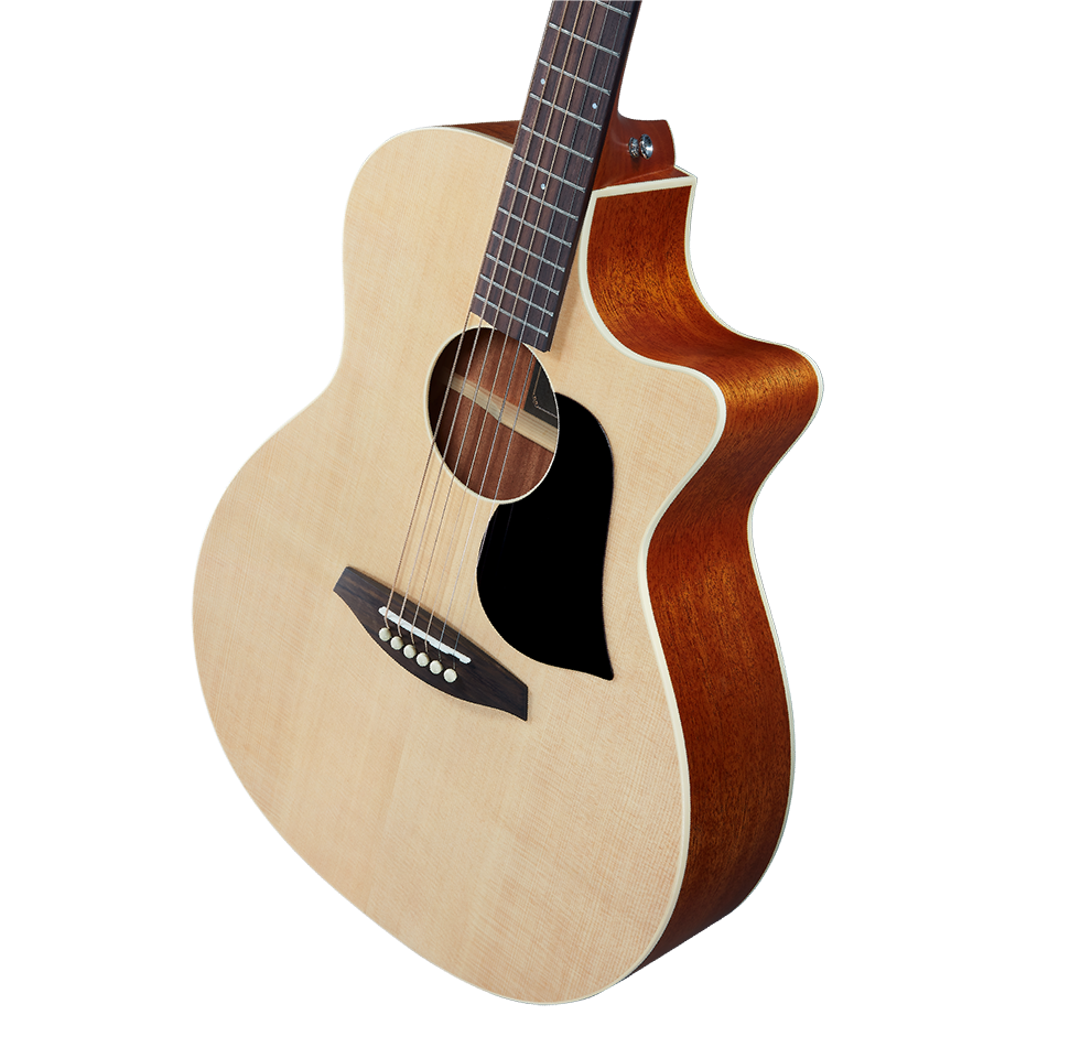 The GA's slender profile provides a comfortable playing experience, particularly suited for long sessions and fingerstyle techniques. Its cutaway design offers easy access to higher frets, making complex melodies and solos more accessible.