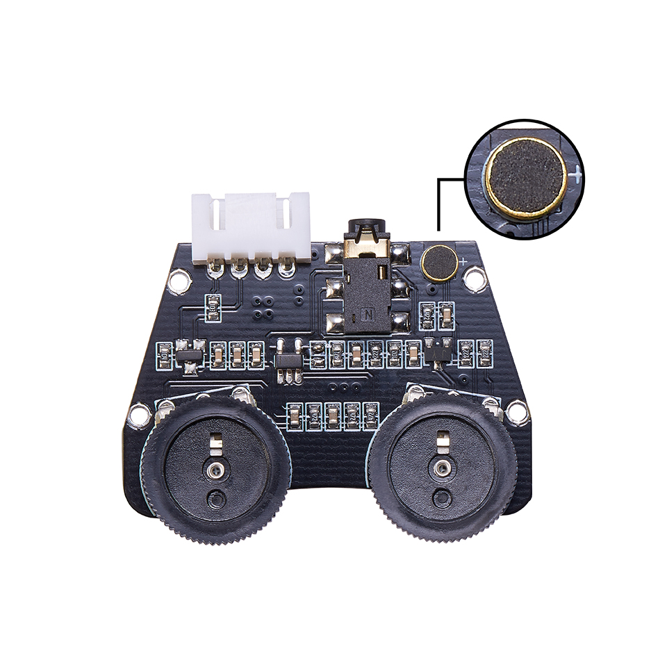 On the Control unit, a high performance Omni-Directional Air Microphone is sitting on the PCB Board. The "purest" microphones in terms of low coloration; they add very little to the original sound. Being pressure-sensitive they can also have a very flat low-frequency response down to 20 Hz or below. The Air Mic adds harmonically rich tone, and pick up the air reflex. Mic level can be adjusted to the fingerstyle percussion on the instrument body.