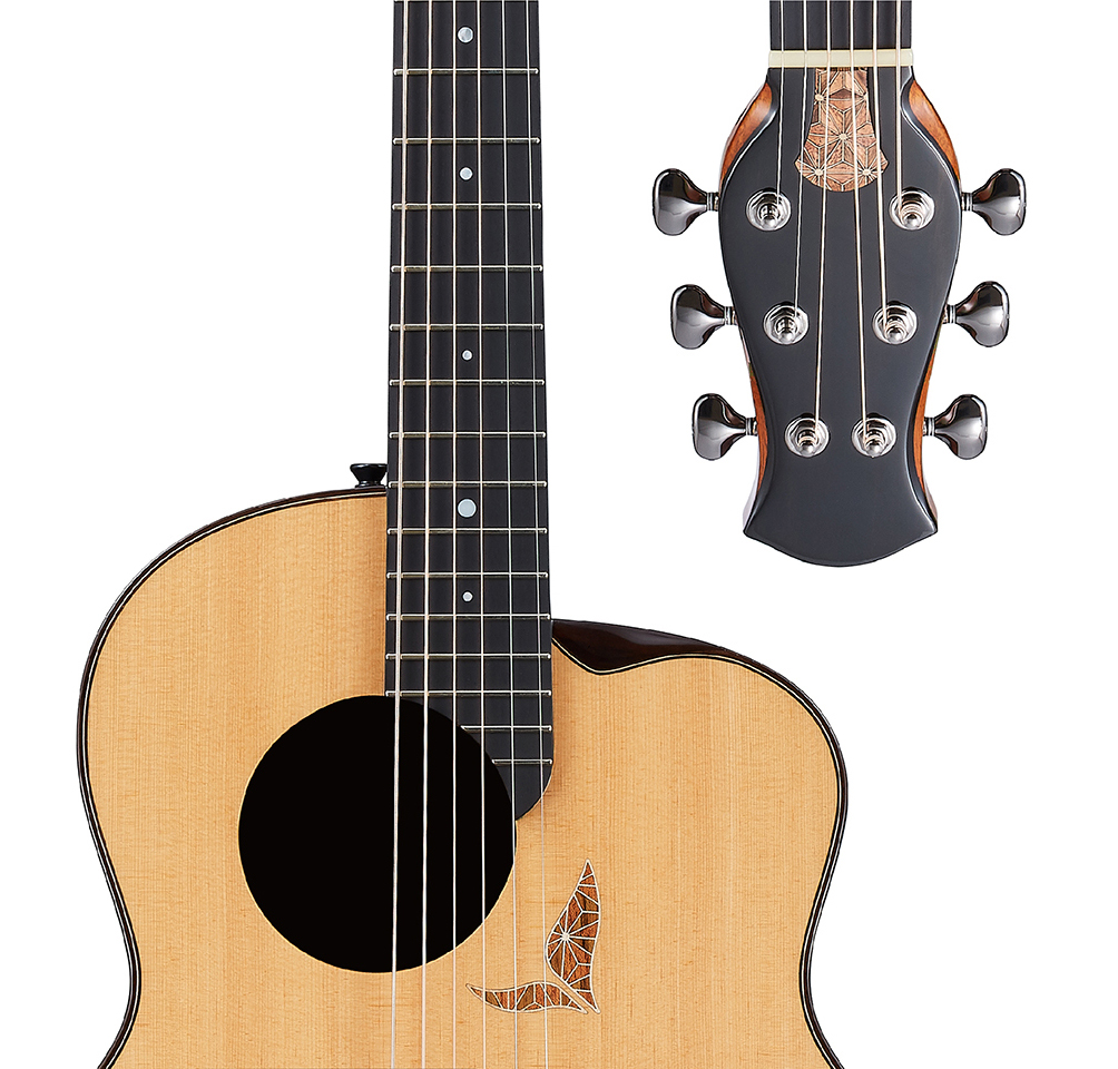 aNueNue's team, originating from Japan and Taiwan, after three years of meticulous craftsmanship in Guangzhou, presents the idealistic, high-craftsmanship "Guitar Future" series. In the design of the Guitar Future series, the classic bird guitar body of aNueNue is integrated, retaining the distinctive offset soundhole and body shape while tailor-making a dedicated force wood structure. This structure tunes a perfect balance between resonance and panel strength, giving the bird guitar a new sound and creating a unique tone.