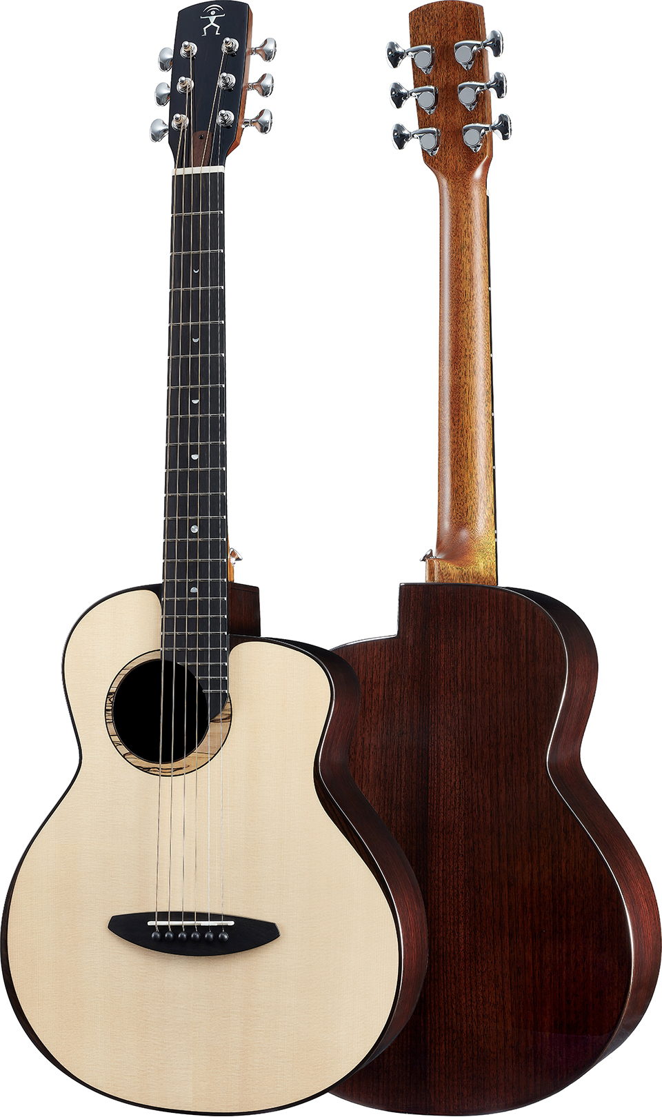 Design with Acoustic Future brace construction into travel size guitar, improve the string to string balance, resonance, sustain, and you can feel the chord harmony. Full size guitar sound built into a travel compact size guitar.