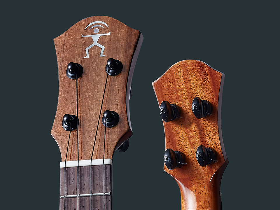 The Bird1K Koa Bird Series has a classic-headstock design made with a hawaiian koa veneer in mother of pearl logo. The Japanese Gotoh UPT tuners with 1:4 gear ratio for precise tuning.