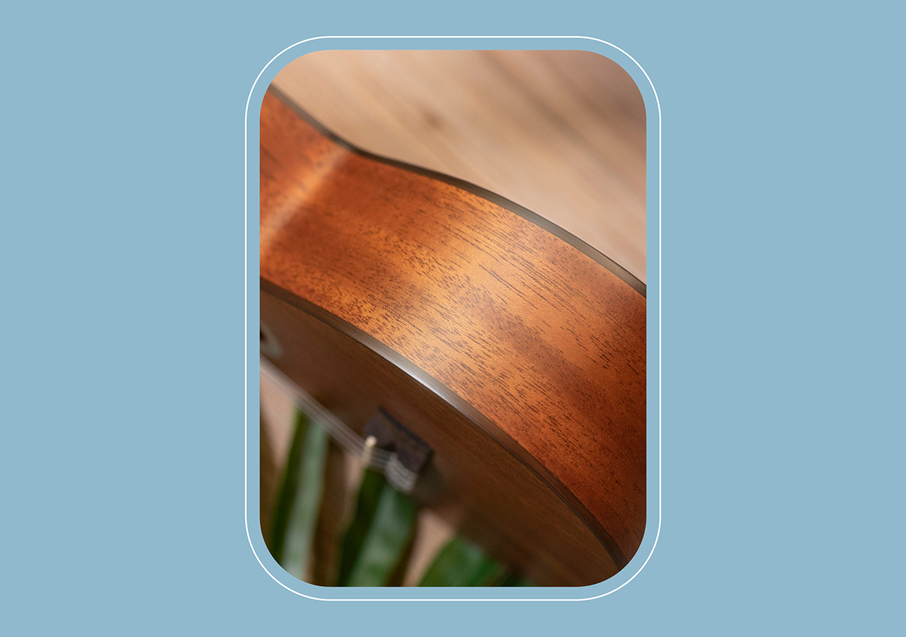 Quarter-sawn straight grain mahogany is lightweight and hard, subsequently it delivers a fast tonal transfer, a bright and organic tone and the bass is on the warmer side.