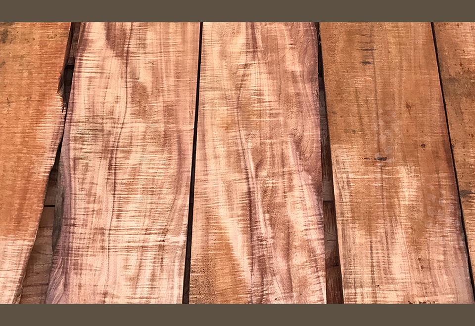 Curly or wavy patterns are rarer and are typically found in the old-growth trees. Figured is also desired and typically milled from areas of the tree where there is the most stress. For example, where the branch forks or twists. Pressure from the weight of the branch and/or stress created by the wind often causes the tree to develop this figuring.