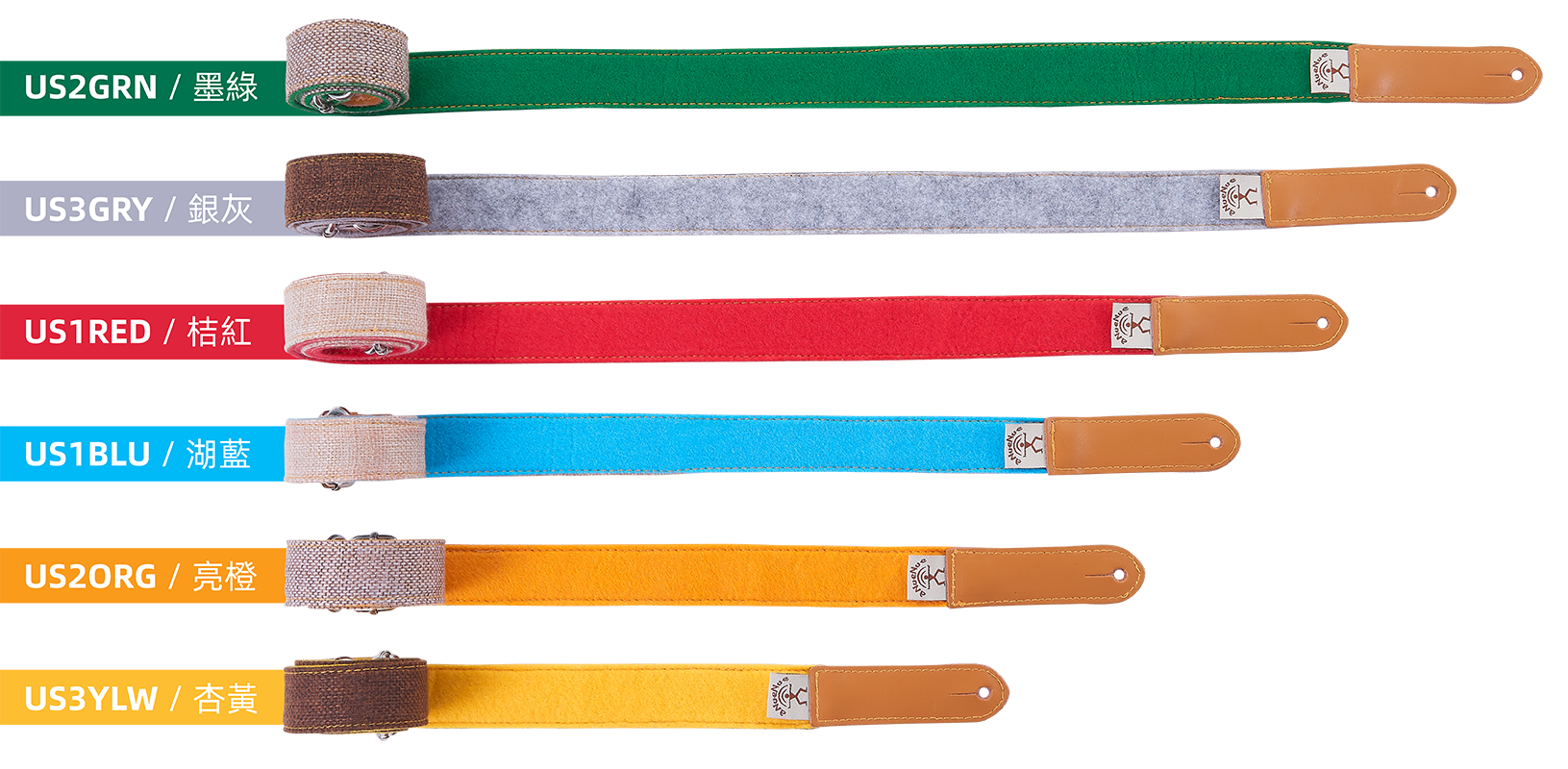 細鳥背帶是鳥背帶延伸的細款產品,以「鳥」的概念設計搭配貼近自然的材質 ─ 麻布以及混羊毛氈作為主要材質,共有三種麻布顏色搭配六色混羊毛氈,背帶兩端使用兼顧質感與實用性的合成皮扣環,可直接使用於有背帶釘的琴款;此背帶也有另附綁繩,既使沒有背帶釘也能繫上彈奏。