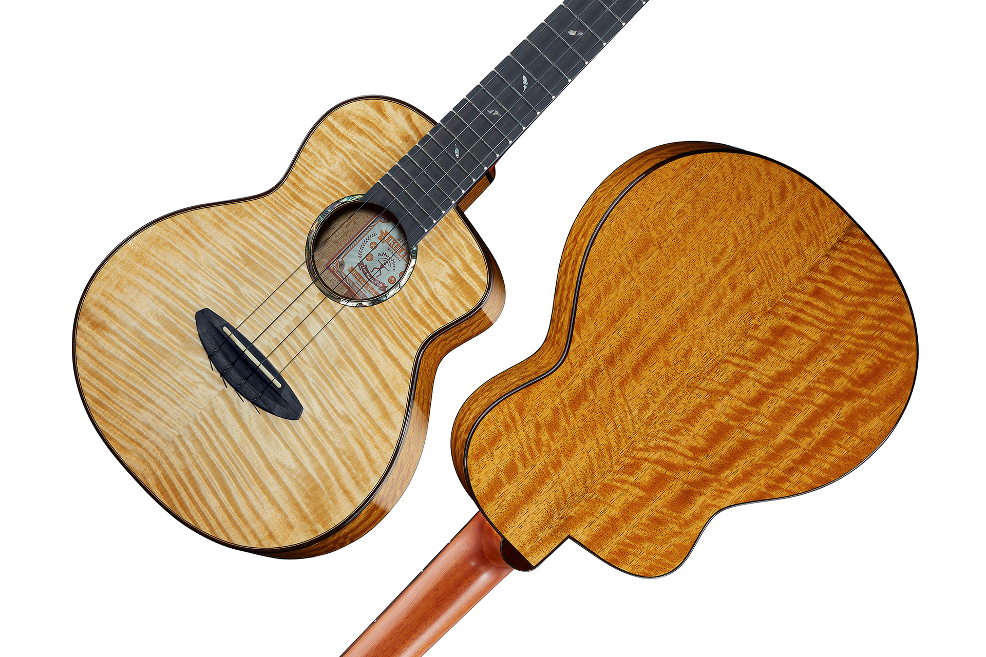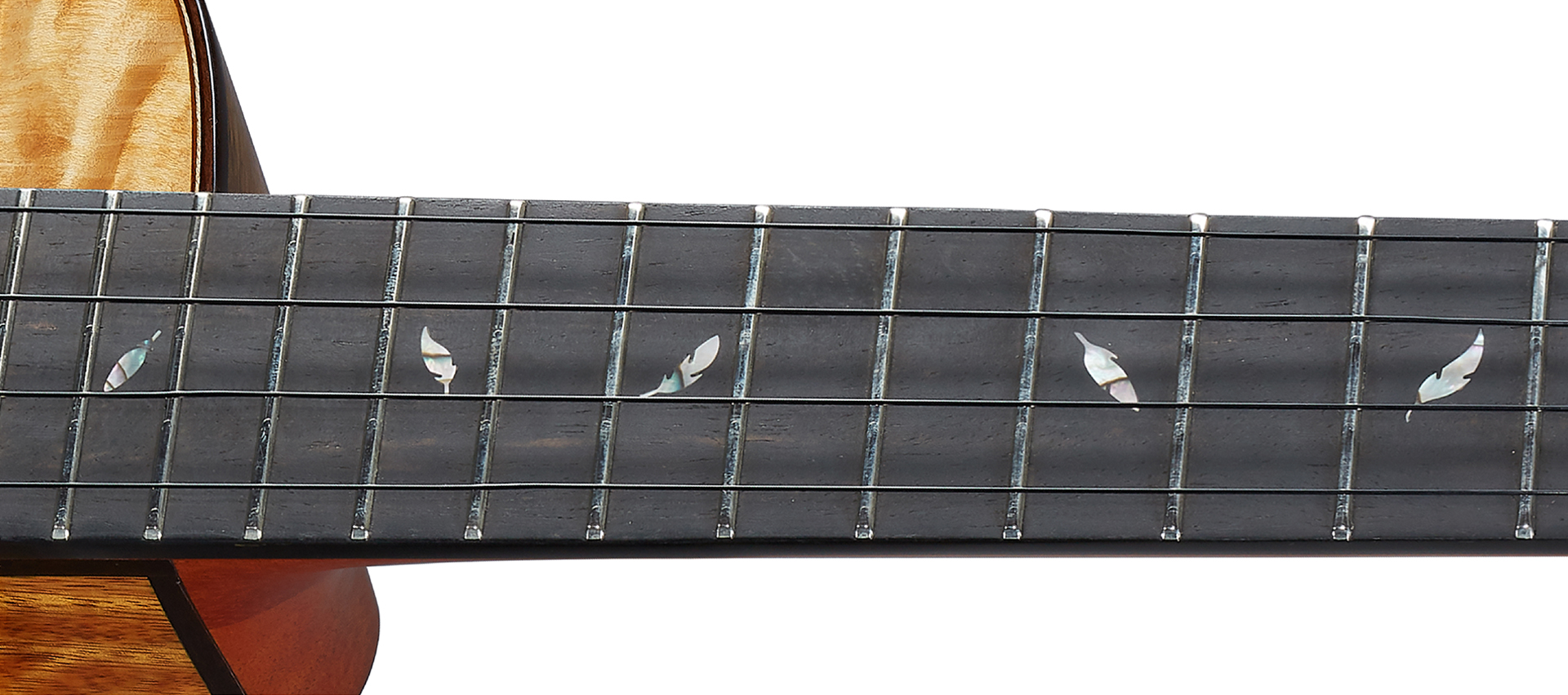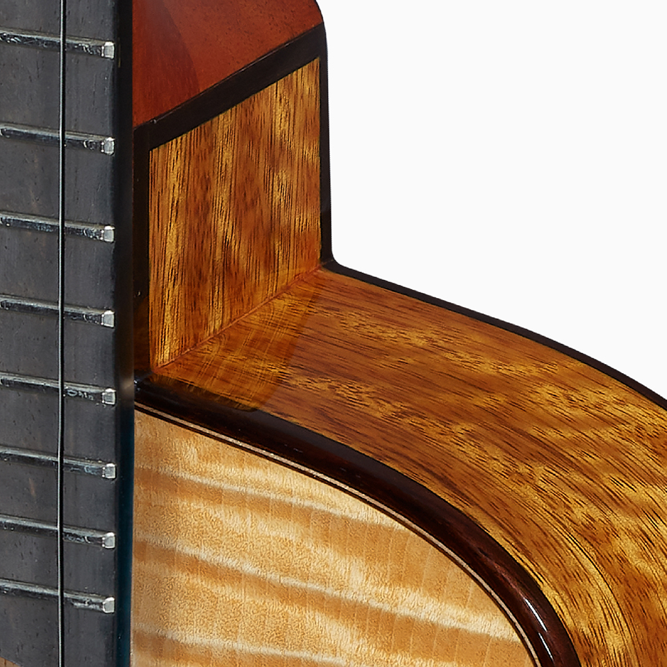 木材配置:4A夏威夷相思木面板、玫瑰木背側板|音色性格:4A夏威夷相思木的黃金光澤,是羽毛尖端折射聲音的第一個清澈光芒,4A夏威夷相思木的黃金光澤,是羽毛尖端折射聲音的第一道清澈光芒,
