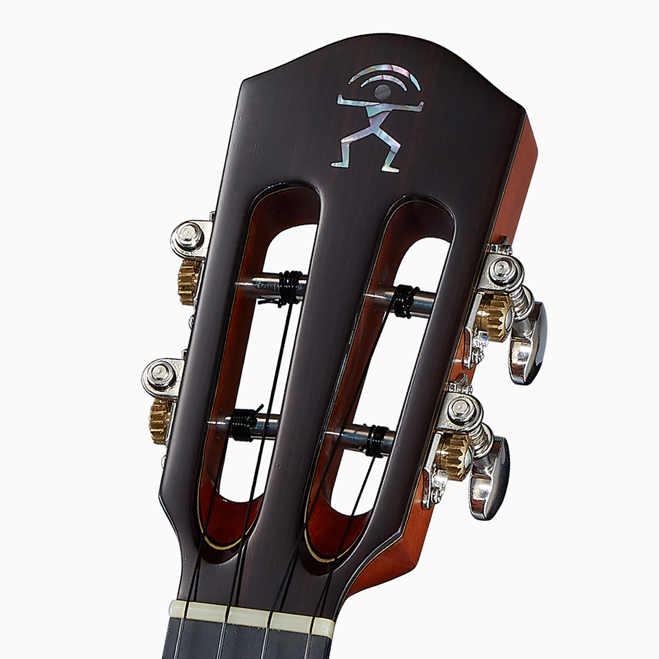 古典琴頭造型上以白貝鑲嵌LOGO 搭配德榮開放式弦鈕